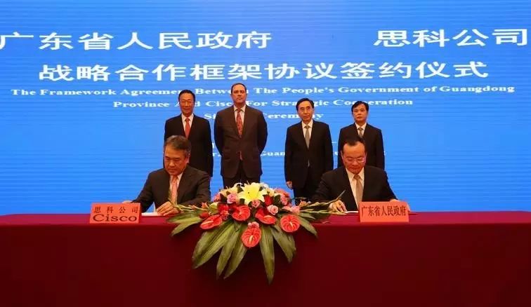 2016年11月9日下午,中共中央政治局委员、省委书记胡春华会见思科公司首席执行官罗卓克。会见后,副省长袁宝成与思科大中华区董事长陈仕炜分别代表广东省政府、思科公司签署战略合作框架协议。就推动广东信息化发展和产业转型升级达成合作意向。并在番禺打造一个全球最高端的物联网智慧园区和示范园区。